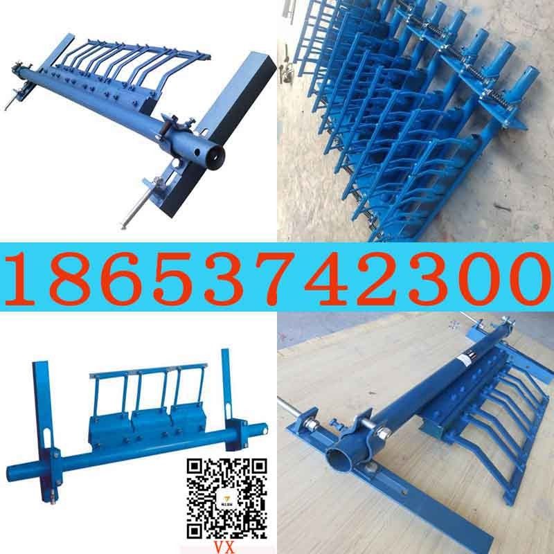 输送带上残留的物料还会加大对滚筒的摩擦力,有时会引起输送带面胶和滚筒包胶层的撕裂。如果清扫装置良好,托辊、输送带等的使用寿命都可以延长。由此可见,清扫器在带式输送机上有着不可忽视的作用。在运行中,如果想人为清除机尾滚筒附着物,可能发生严重人身伤亡事故。因此,为保证带式输送机正运转,必须将输送带上的附着物清扫干净。目前国内大多数输送带清扫器是合金橡胶清扫器,它采用橡胶块作为弹性体来使合金清扫刮刀压在胶带表面上,该清扫器虽然结构简单,但清扫器功能好,由于采用的是硬质合金刮刀,使用寿命长,清理效果好,广受用户的欢迎