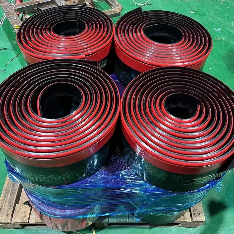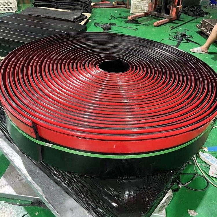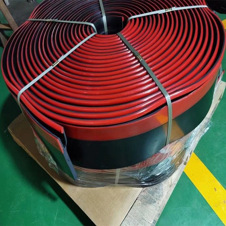 产品组成:.防溢裙边的主体部分为黑色,采用天然橡胶和丁苯橡胶混炼而成,在保持挺括的基础上增加弹性,使红色的多护密封条紧密的贴服在输送带上,甚至当多护系统达到使用寿命后能够继续起到防溢裙边的作用,降低使用客户的的经济效益。